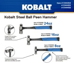 Kobalt 16 -oz Steel Head Steel Handle Ball Peen Hammer