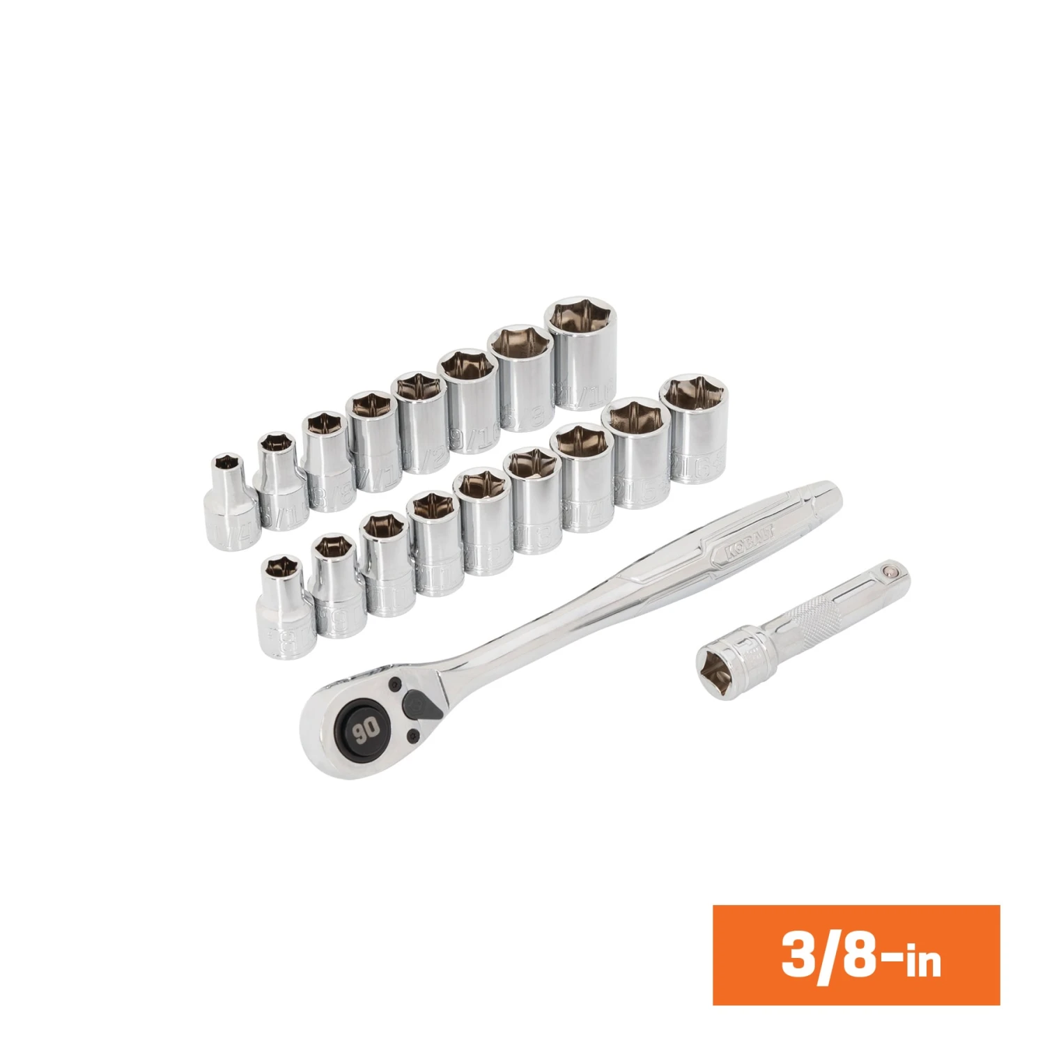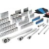 Kobalt’s 170-piece mechanic’s tool set features 1/4-inch, 3/8-inch and 1/2-inch drive 90-tooth ratchets, sockets and bit sockets