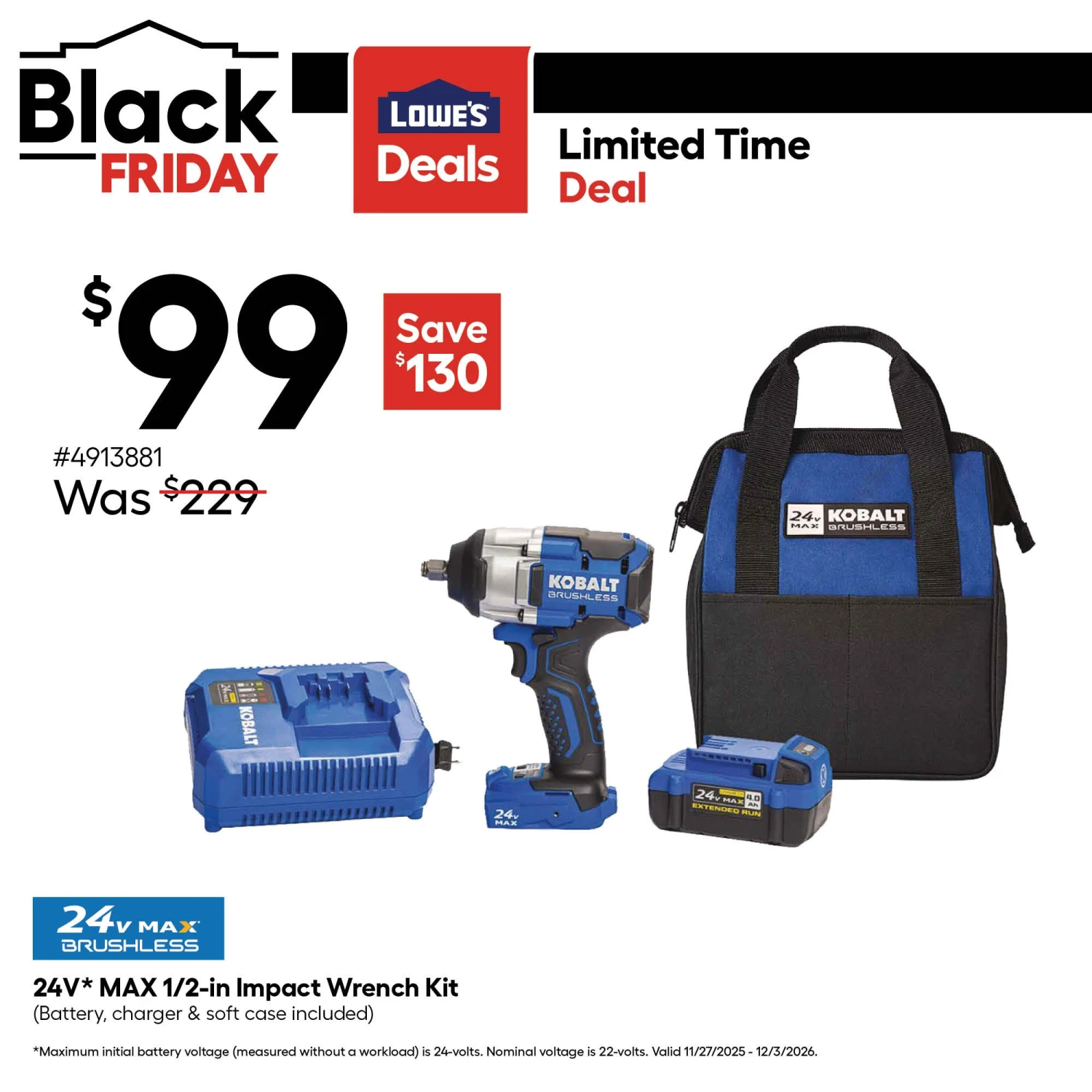 Backed by a limited 5-year tool and 3 year battery warranty and part of the 75+ Kobalt 24V tool family