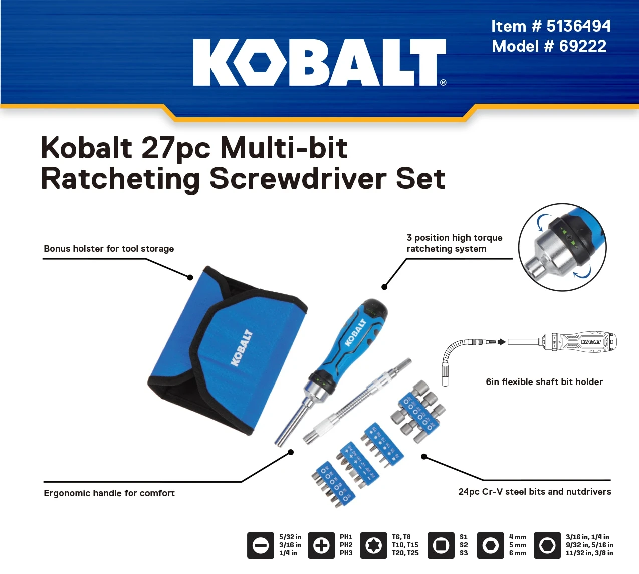 Kobalt 27 -Piece 3-in Ratcheting Multi-Bit Combination Tip Screwdriver Set