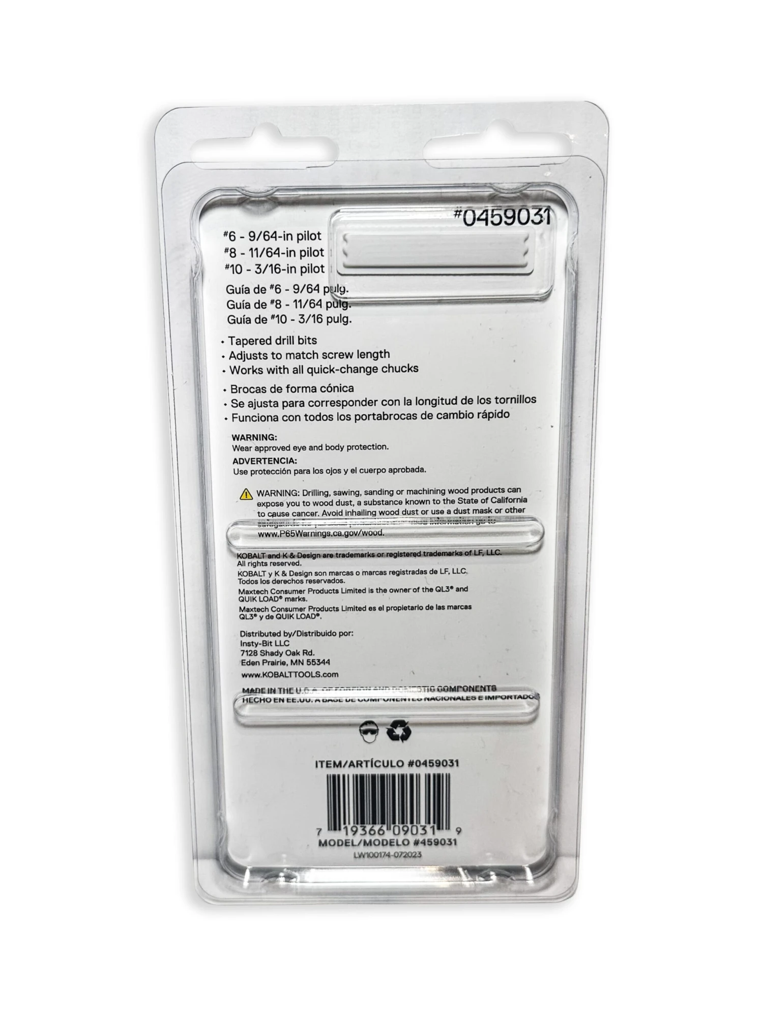 • High-speed steel taper point drill bits Includes: 9/64″, 11/64″ & 3/16″ bits