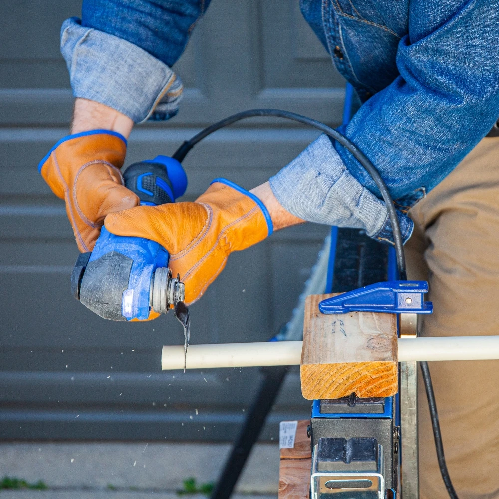 Tool-less blade change provides quick and easy accessory changes, reducing downtime on the job
