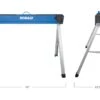 Load capacity is 1100 lbs per sawhorse, and when paired, can safely hold up to 2200 lbs