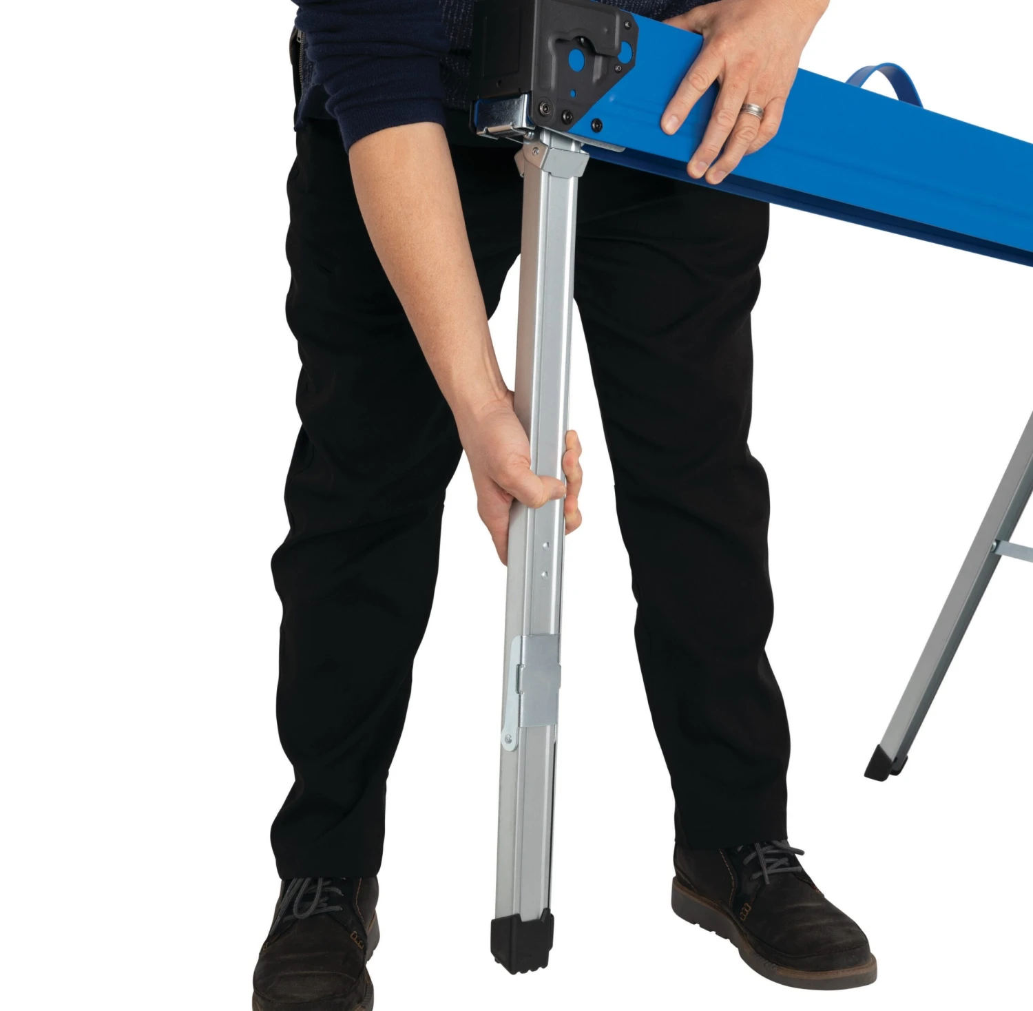Legs fold into the body of the sawhorse for easy storage and transportation