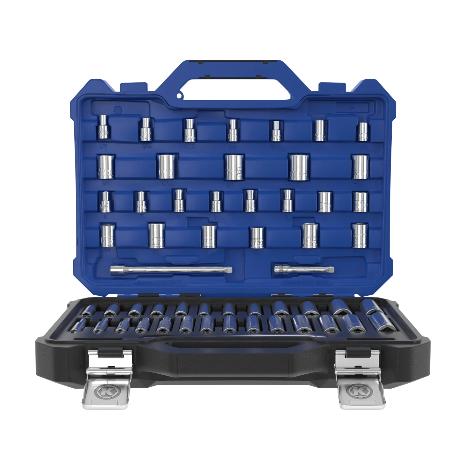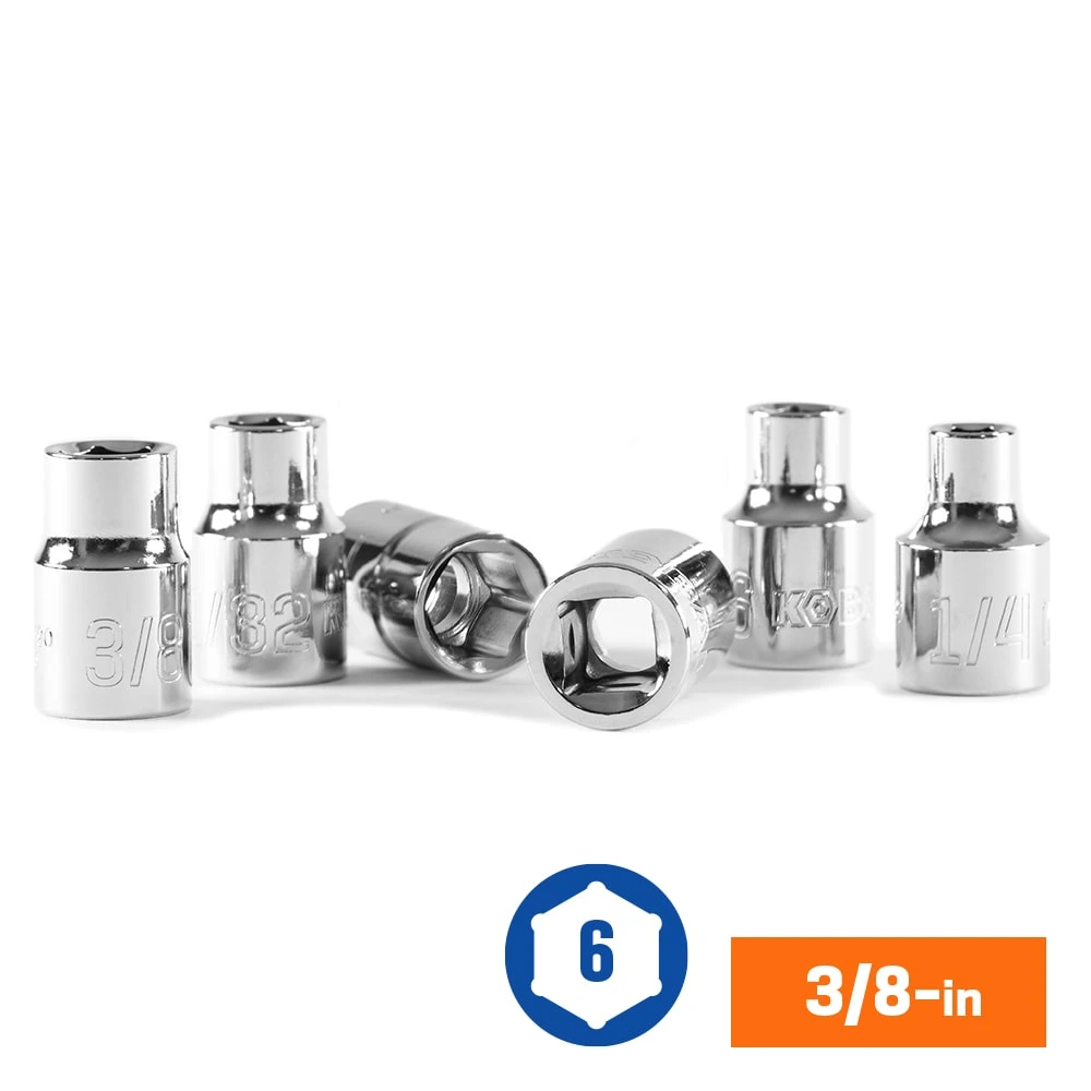 Kobalt’s dedicated 3/8-inch drive mechanic’s tool set includes a mix of fifty (50) deep and shallow, metric and SAE sockets