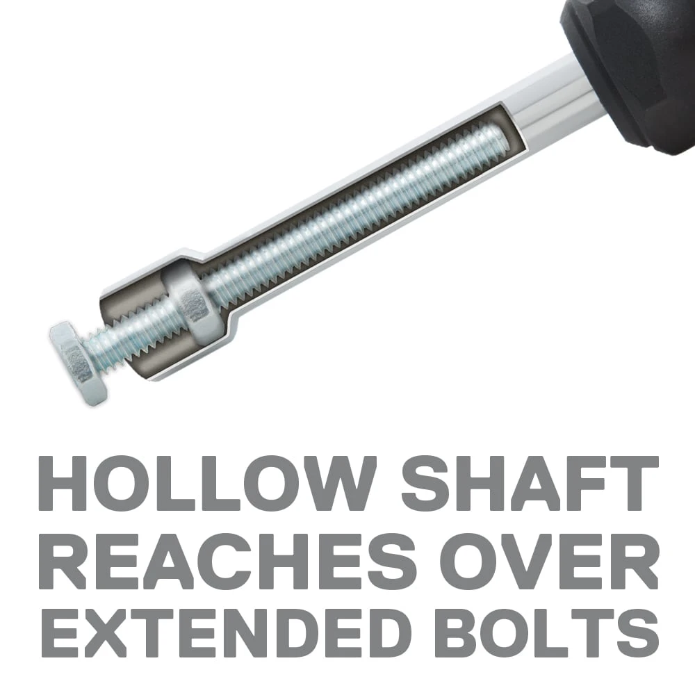 Handle end accepts 1/4-in drive ratchet for more torque when tightening or loosening a fastener