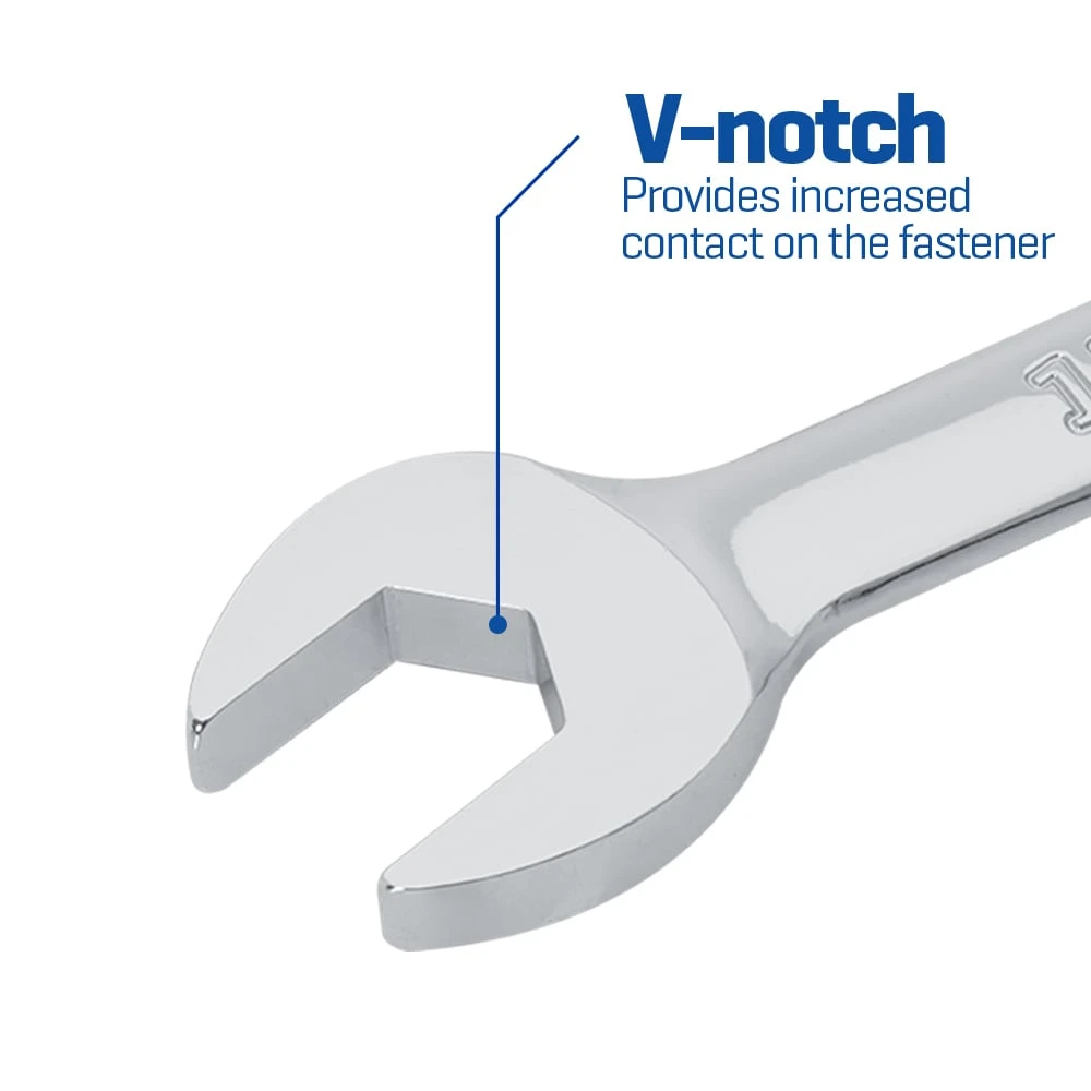 Open end features V-notch design and provides solid contact with your fastener during use