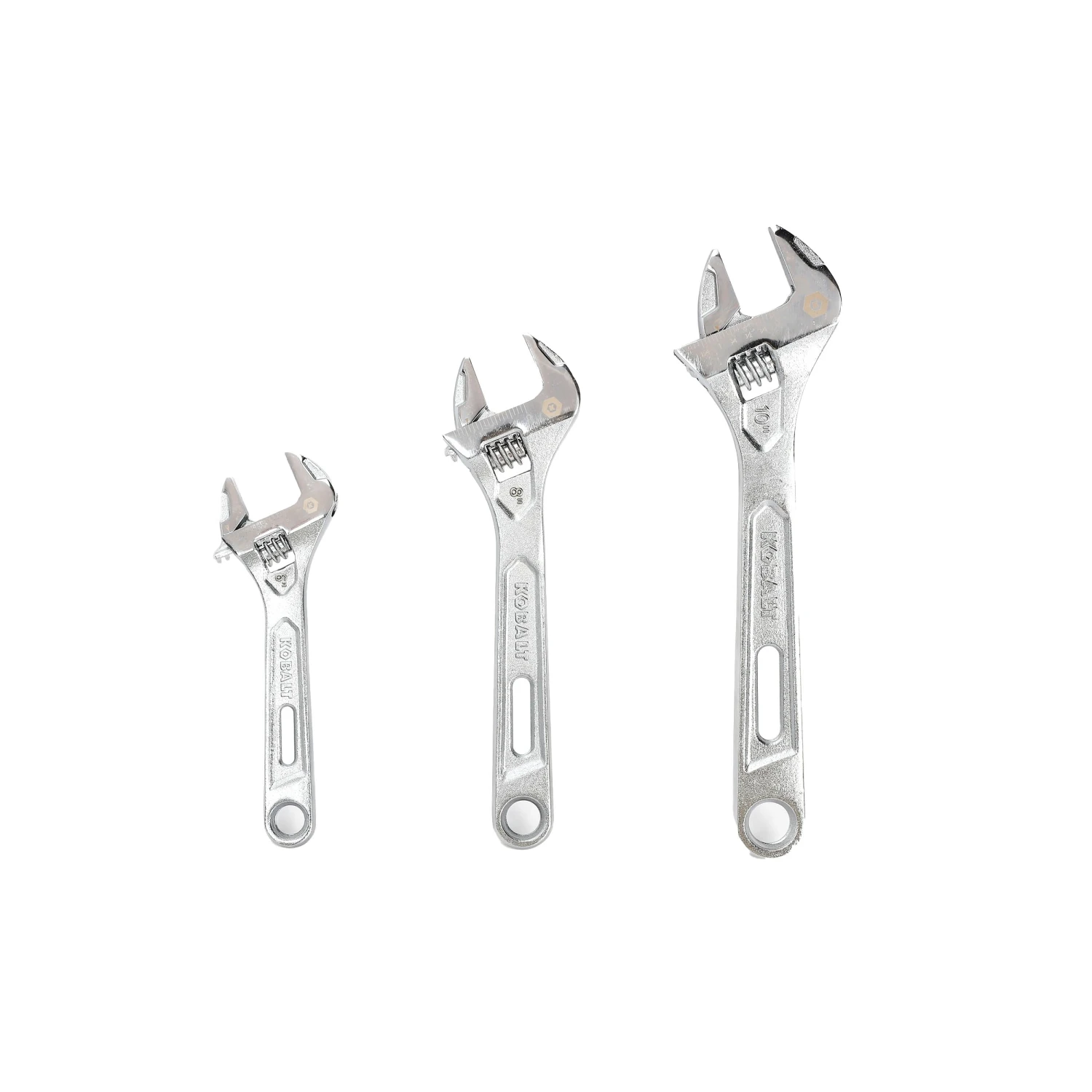 • Kobalt 3-piece tool set includes 6-in, 8-in and 10-in adjustable wrenches with extra-wide jaws for versatility