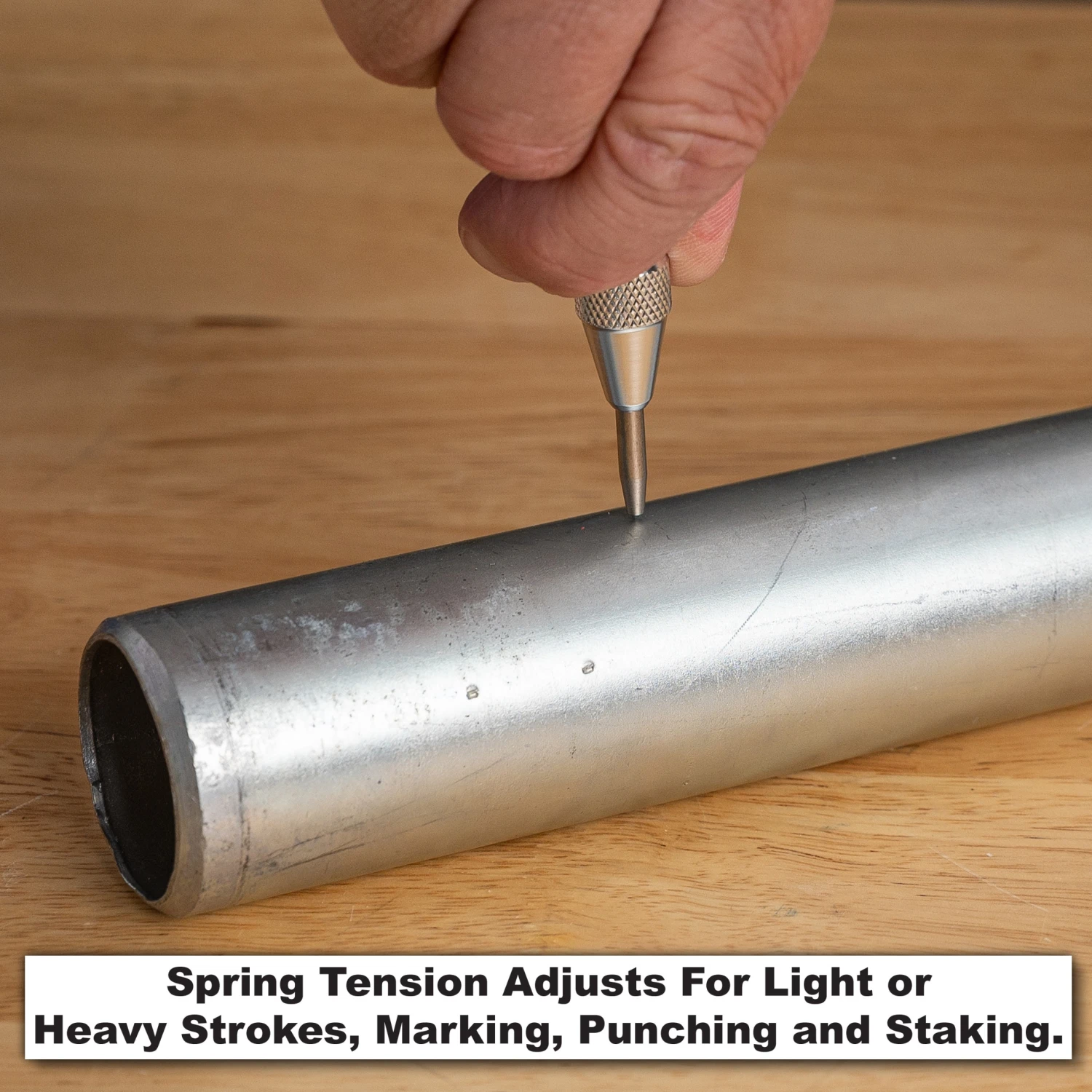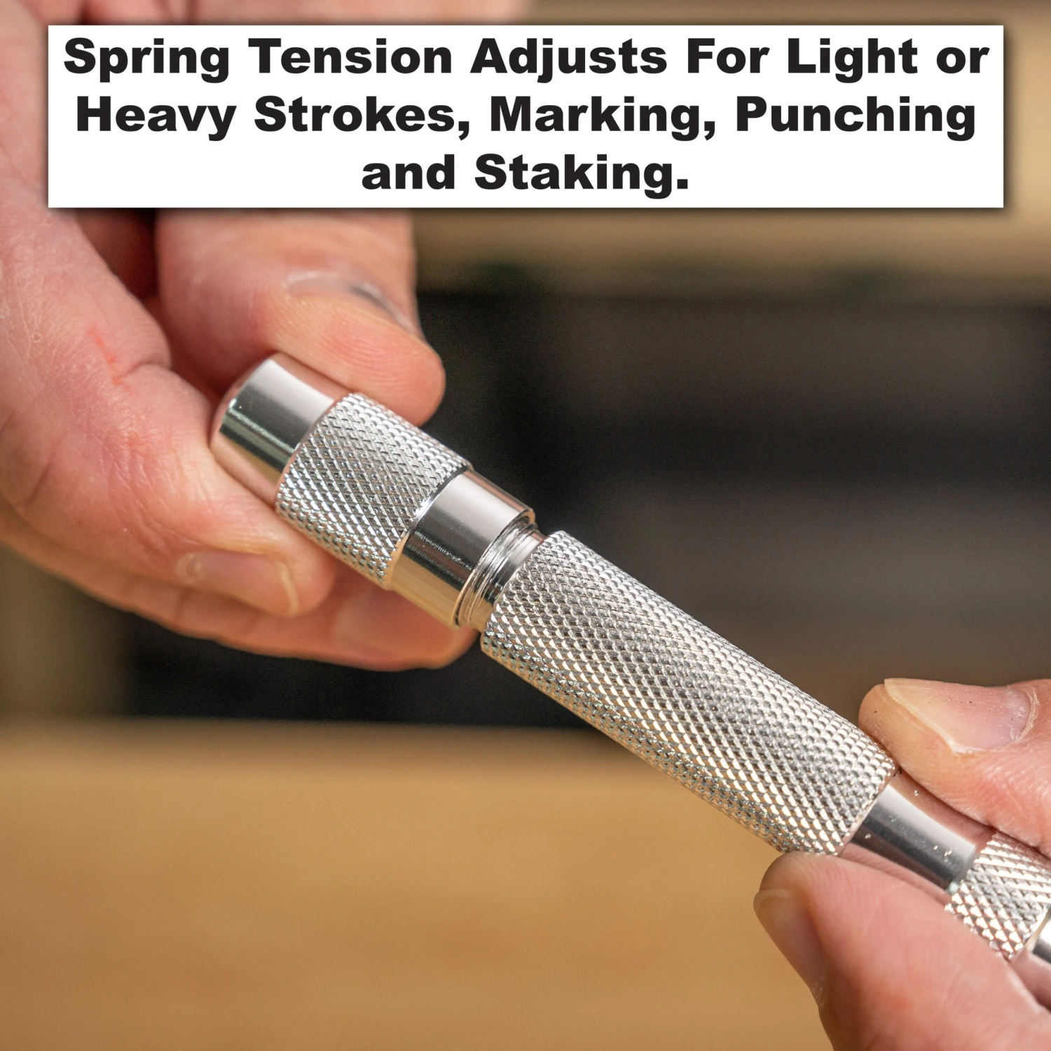 Spring tension adjusts for light or heavy strokes, marking, punching and staking