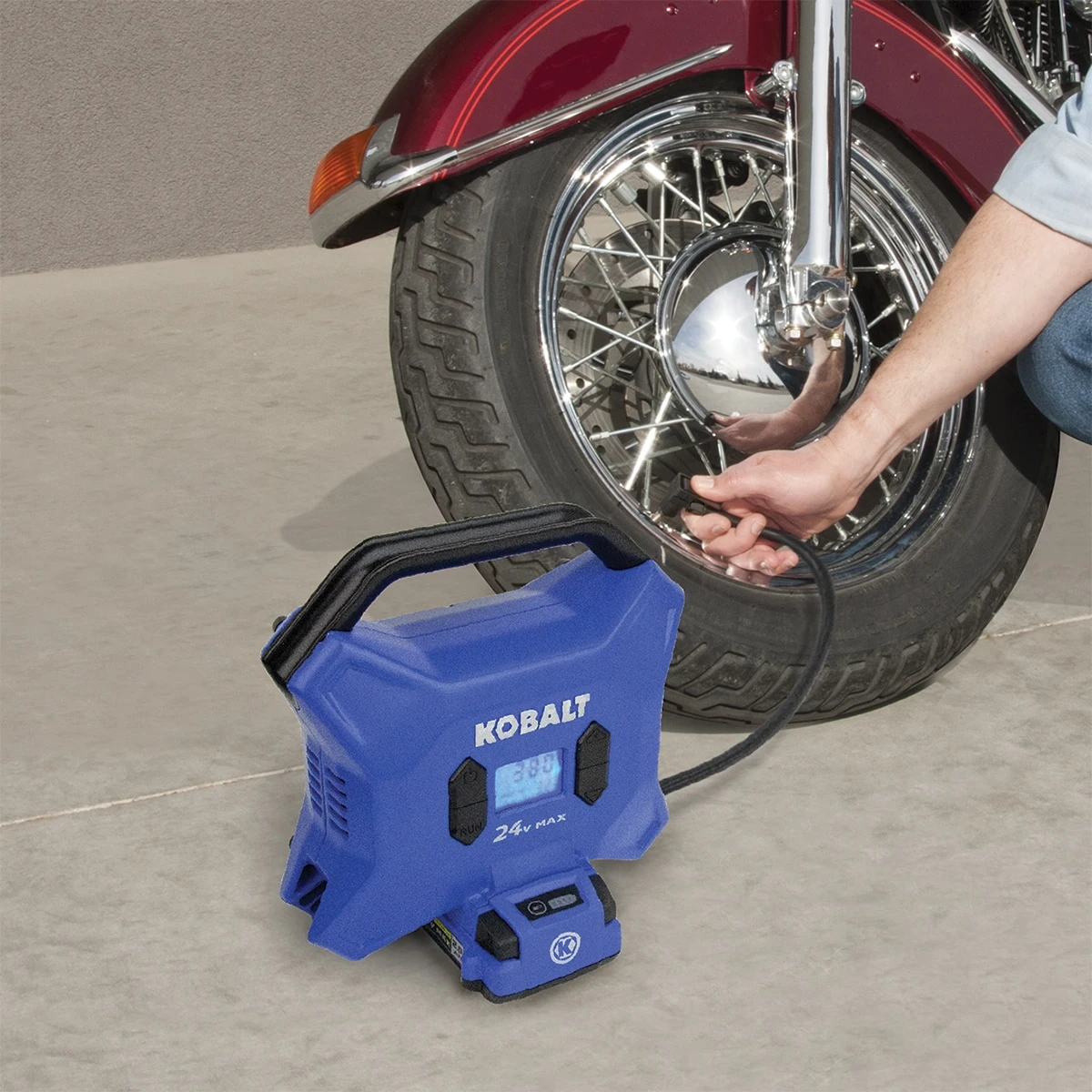 KOBALT 24V cordless high pressure Inflator for vehicle tires, sports equipment and more.