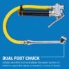 Designed for easy access, the dual foot chuck allows inflation from both sides, perfect for reaching hard-to-access tire valves on larger vehicles like tractors, trucks, and buses