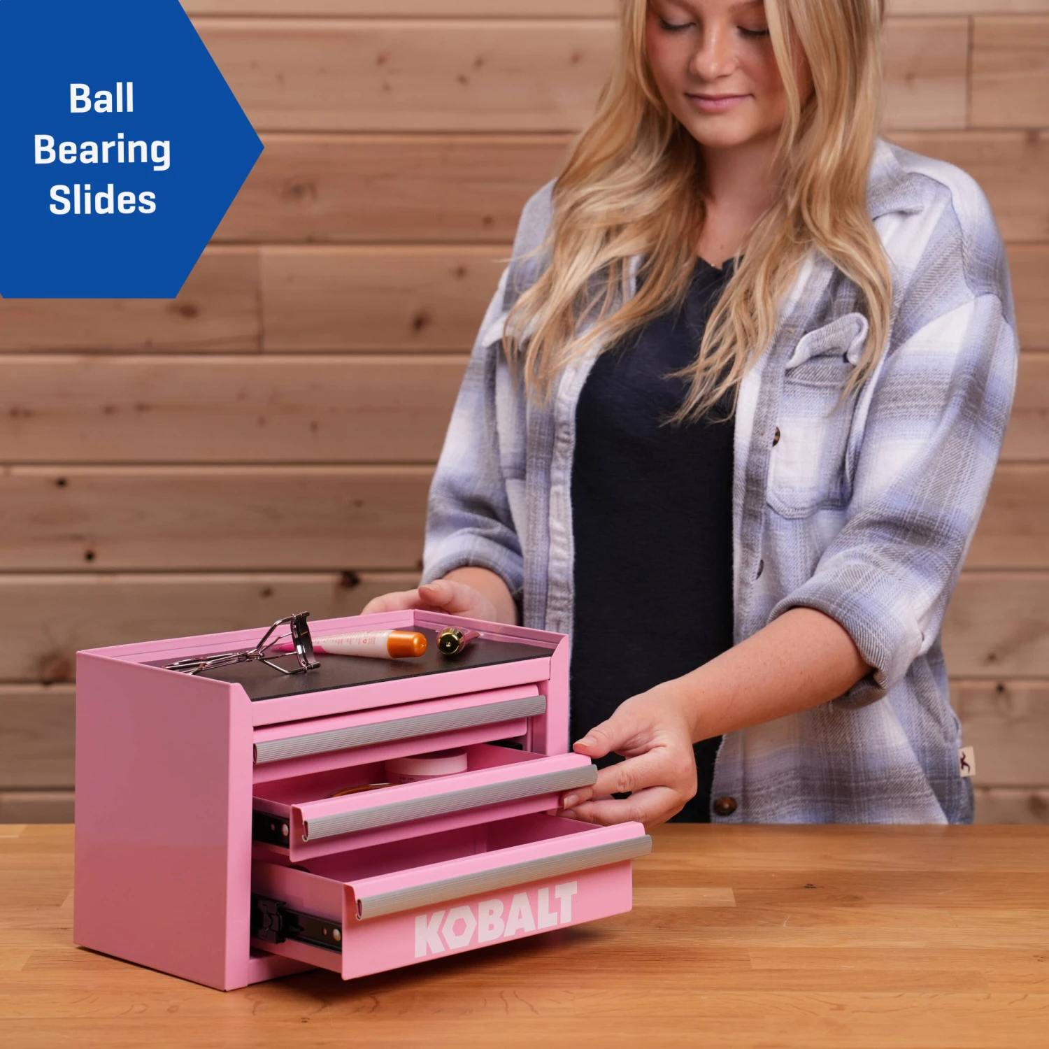 Kobalt Portable Tool Box 11.1-in W X 7.36-in H X 6.14-in D 3 -Drawer Pink Steel Tool Box