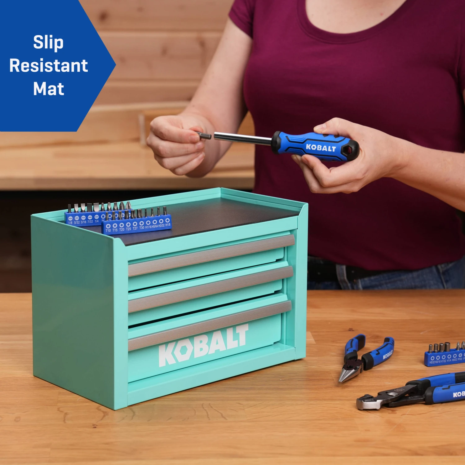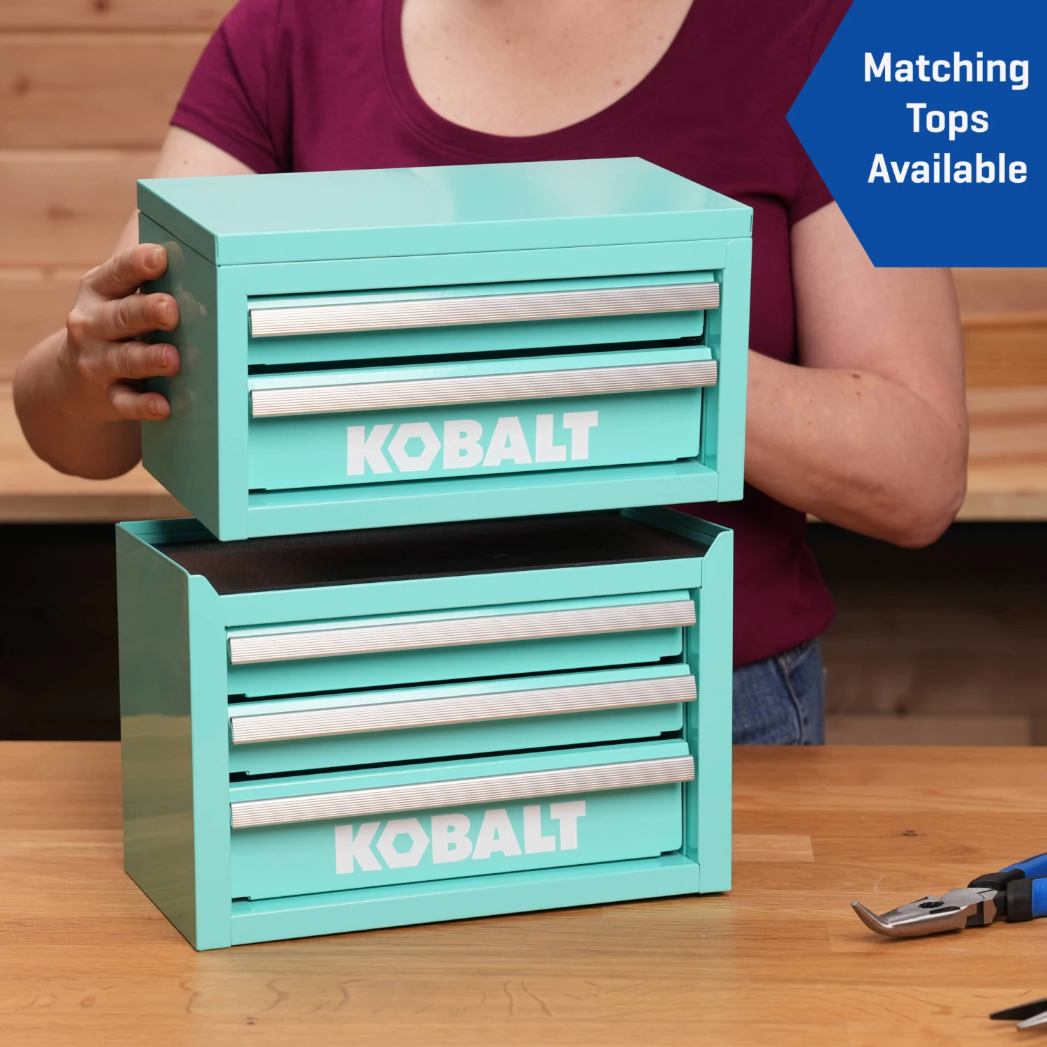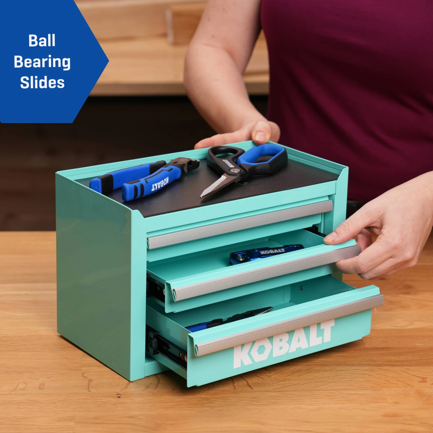 Kobalt Portable Tool Box 11.1-in W X 7.36-in H X 6.14-in D 3 -Drawer Teal Steel Tool Box