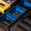 Tray bases are magnetic, sticking to most metal surfaces to hold nuts, bolts, screws in place